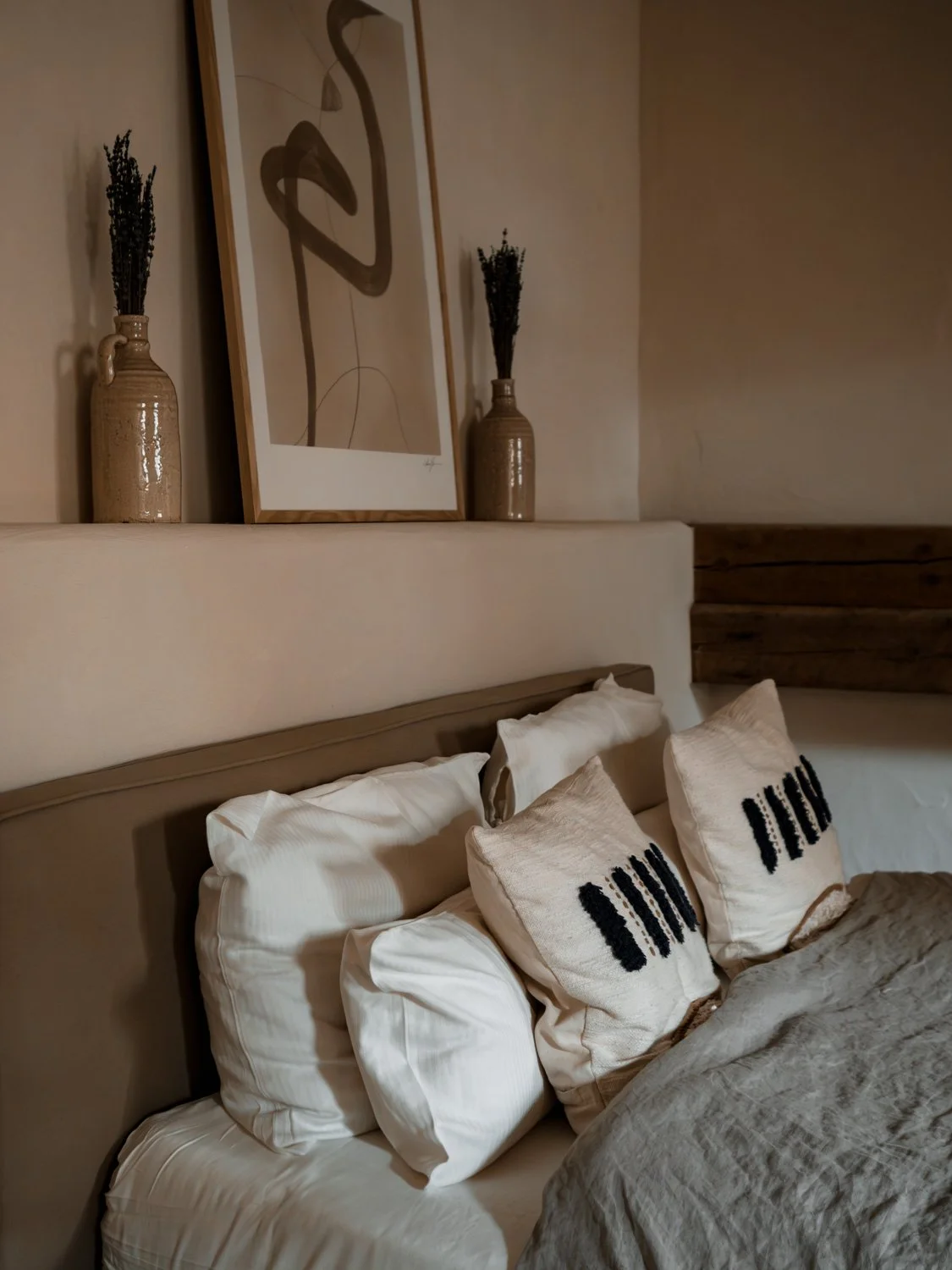Rosso combines neutral colors, open spaces, lime-plastered high walls, and wooden-beamed ceilings that shape serene, neat, and functional spaces. The interiors at Rosso foster the ideal atmosphere to inspire moments of leisure, relaxation, and calm.